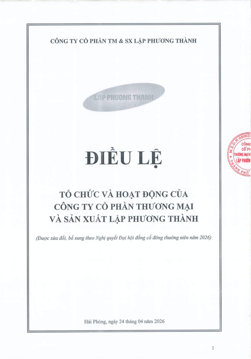 Điều lệ công ty sửa đổi ngày 24/02/2026
